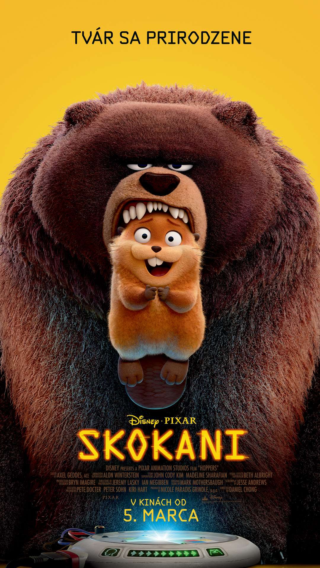 Nová animovaná akčná komédia od Disney a Pixar, SKOKANI, predstavuje milovníčku zvierat Mabel, ktorá využije príležitosť , alebo skôr skočí po šanci vyskúšať novú technológiu, ktorá jej umožňuje komunikovať so zvieratami novým vzrušujúcim spôsobom. Potom, čo skupina vedcov vynájde spôsob, ako „presunúť“ ľudskú myseľ do teliesok robotických zvierat, ktoré vyzerajú ako živé, milovníčka zvierat Mabel využije túto technológiu, aby sa stala robotickým bobrom a prekazila plán stavebnej spoločnosti zničiť miestne zvieracie biotopy. „Vo filme Skokani odpovedáme na otázku: ‚Čo keby sme mohli rozumieť zvieratám a komunikovať s nimi?‘“ hovorí režisér filmu Daniel Chong. „Naša hrdinka Mabel má príležitosť objavovať ríšu zvierat ako zviera, čo môže byť zvláštne a často aj zábavné. Mabel sa pohybuje v utajení vo svete zvierat, čo je pre ňu vlastne ako jazda na horskej dráhe… Príbeh má všetko, čo by ste očakávali od klasického filmu od štúdia Pixar.