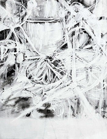 Projekt Silver Surfing sa primárne zaoberá pojmom vzdialenosti, ktorá sa manifestuje do predstavy cestovania časom a vesmírom spoločne s imaginatívnym kamošom Norrinom Raddom. Postava Norrina Radda a.k.a. Silver Surfera ma sprevádza ako figúra ostrosti, brilantnosti a obrovskej zručnosti, spojená s hlbokým smútkom. Pojem vzdialenosti chápeme fyzicky aj psychicky. Globalizácia nás približuje, no rovnako oddeľuje. Pri častom sťahovaní je človek nútený vytvárať si vlastné bubliny. Jednou z nich je aj tá moja, ktorá je v mojom svete ideí a imaginácie unášaná prúdom kozmu bez fyzikálnych zákonov reality – bez hraníc, pravidiel a pochybností. Vzdialenosť chápem aj ako základ abstraktnej maľby. Na to, aby sa človek v obraze umiestnil, musí pochopiť, čo sa javí ako vpredu a čo vzadu. V sérii malieb Silver Surfing som sa rozhodla obmedziť farebnú škálu a docieliť tak koncentrovanejšiu skúsenosť z tvorby. Toto obmedzenie ovplyvnilo praktickú časť výstavby obrazu a otvorilo otázku chápania kontrastu. Veľa som premýšľala o hĺbke čiernej a bielej a o kresbe – ako ju použiť tak, aby nepôsobila ako niečo dodatočné, ale ako integrovaná súčasť obrazu, podobne ako je to pri grafických tlačiach. Čiernobiela zároveň historicky sama odkazuje na kresbu a grafiku. Kresba a tlač boli pôvodne založené na čiernej a bielej – biely papier v kombinácii s čiernym grafitom alebo atramentom na matriciach. Je v tom niečo základné, čo sa neustále vracia.