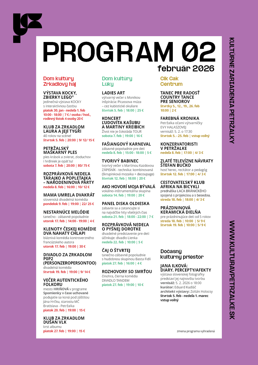 Február 2026 v Kultúrnych zariadeniach Petržalky