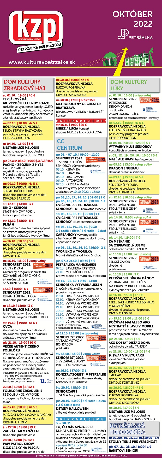 Októbrové podujatia v Kultúrnych zariadeniach Petržalky
